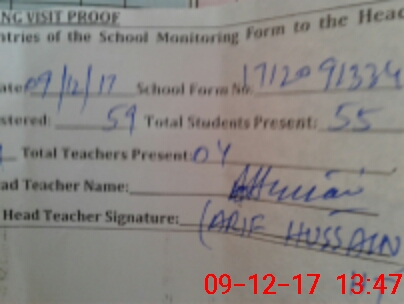 | Attendance Register | Head Teacher | MEA with School | Visit Proof |