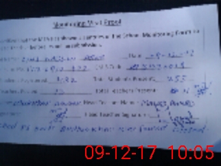| Monitoring Date: 09-12-2017 | Start Time: 09-12-2017 09:13 AM | End Time: 09-12-2017 10:07 AM | Name of MEA: Mu**** Am**** | |