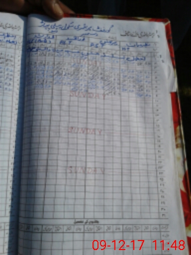 | CNIC | Full Name | Designation | R/C | Absence During Last Calender Month |