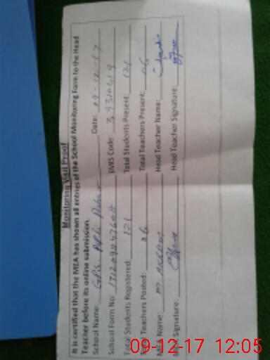 | Attendance Register | Head Teacher | MEA with School | Visit Proof |