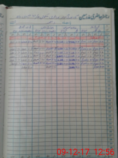 | CNIC | Full Name | Designation | R/C | Absence During Last Calender Month |