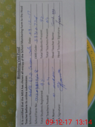 | Certified that this School was Inspected by the Undersigned MEA/DMO Today and the Information Stated Above is as Per Record. | |||||
