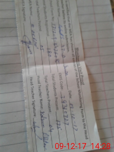 | Attendance Register | Head Teacher | MEA with School | Visit Proof |