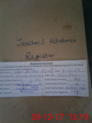 | Attendance Register | Head Teacher | MEA with School | Visit Proof |