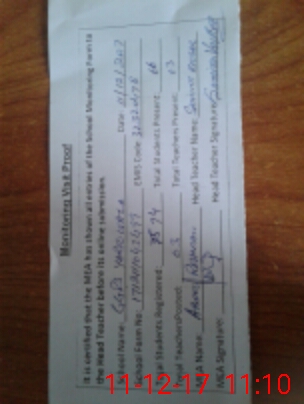 | Attendance Register | Head Teacher | MEA with School | Visit Proof |