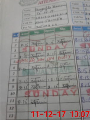 | CNIC | Full Name | Designation | R/C | Absence During Last Calender Month |