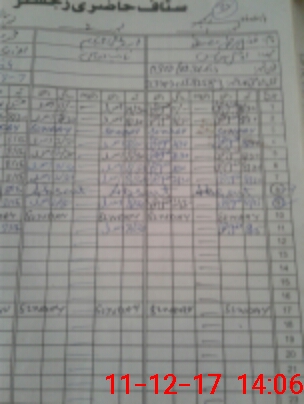 | CNIC | Full Name | Designation | R/C | Absence During Last Calender Month |