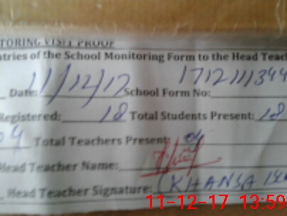| Attendance Register | Head Teacher | MEA with School | Visit Proof |
