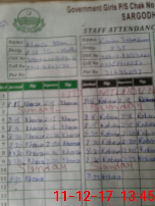 | CNIC | Full Name | Designation | R/C | Absence During Last Calender Month |