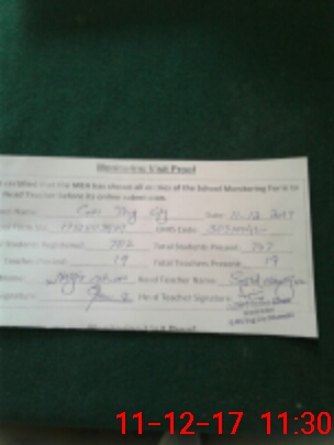 | Attendance Register | Head Teacher | MEA with School | Visit Proof |