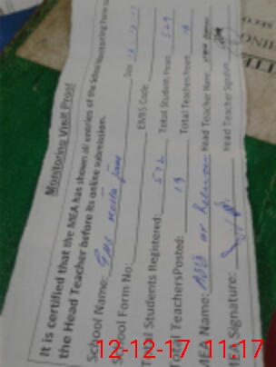 | Certified that this School was Inspected by the Undersigned MEA/DMO Today and the Information Stated Above is as Per Record. | |||||
