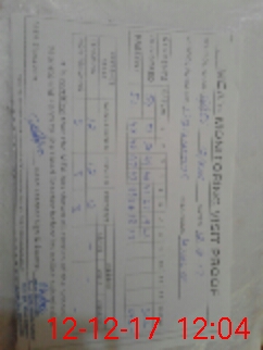 | Monitoring Date: 12-12-2017 | Start Time: 12-12-2017 11:05 AM | End Time: 12-12-2017 12:09 PM | Name of MEA: Kh**** Me**** | |