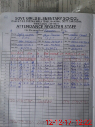 | EMIS Code: 38410531 | Name of School: GGES CHAK NO. 7 SB SYEDAN WALA | |||