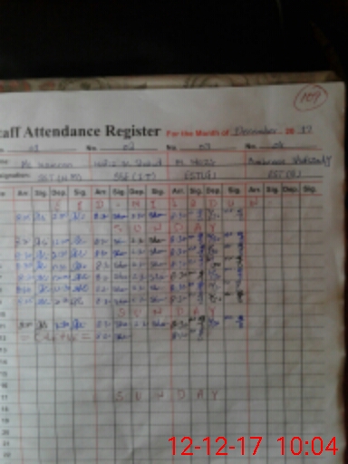 | CNIC | Full Name | Designation | R/C | Absence During Last Calender Month |