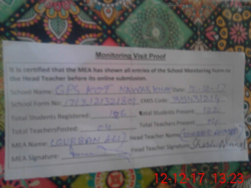 | EMIS Code: 35431214 | Name of School: GPS KOT NAWAB KHAN | |||
