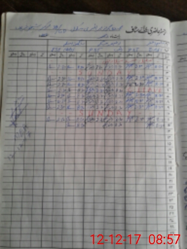 | CNIC | Full Name | Designation | R/C | Absence During Last Calender Month |