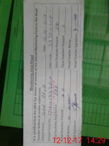 | Attendance Register | Head Teacher | MEA with School | Visit Proof |