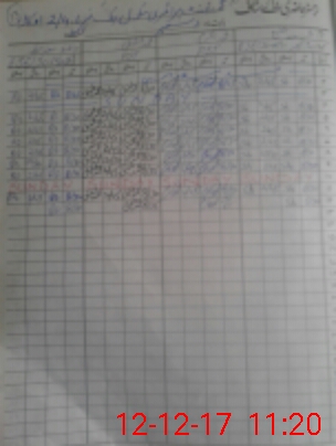 | CNIC | Full Name | Designation | R/C | Absence During Last Calender Month |
