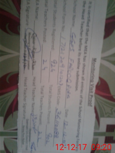 | Attendance Register | Head Teacher | MEA with School | Visit Proof |