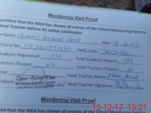| EMIS Code: 36120332 | Name of School: GPS ANWAR PEER SHUJABAD | |||