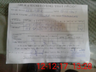 | Monitoring Date: 12-12-2017 | Start Time: 12-12-2017 01:03 PM | End Time: 12-12-2017 02:04 PM | Name of MEA: Mu**** Al**** ex**** | |