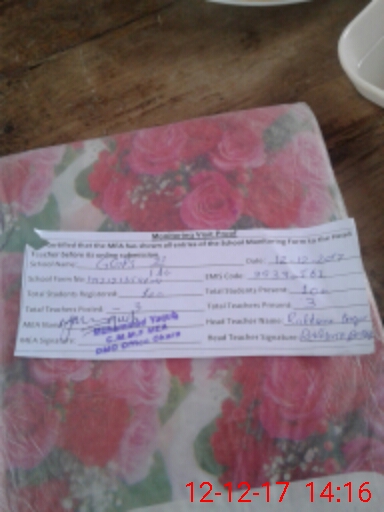 | Attendance Register | Head Teacher | MEA with School | Visit Proof |
