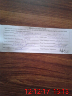| Attendance Register | Head Teacher | MEA with School | Visit Proof |