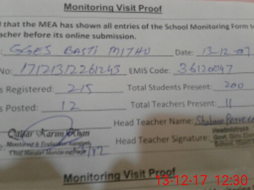 | Certified that this School was Inspected by the Undersigned MEA/DMO Today and the Information Stated Above is as Per Record. | |||||