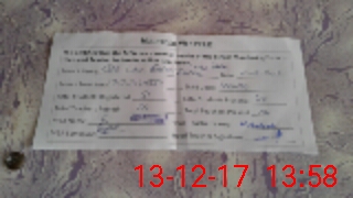 | Monitoring Date: 13-12-2017 | Start Time: 13-12-2017 01:18 PM | End Time: 13-12-2017 01:58 PM | Name of MEA: SH**** AL**** | |