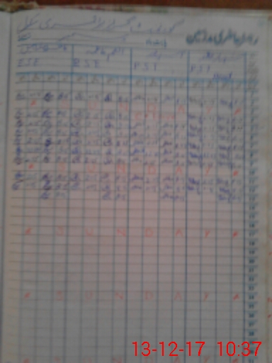 | CNIC | Full Name | Designation | R/C | Absence During Last Calender Month |