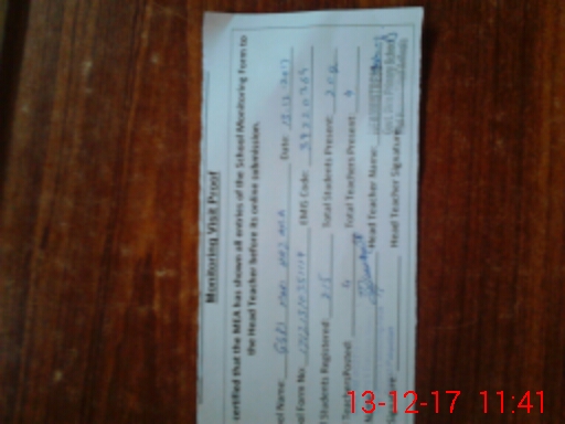 | Attendance Register | Head Teacher | MEA with School | Visit Proof |