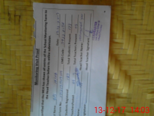 | Attendance Register | Head Teacher | MEA with School | Visit Proof |
