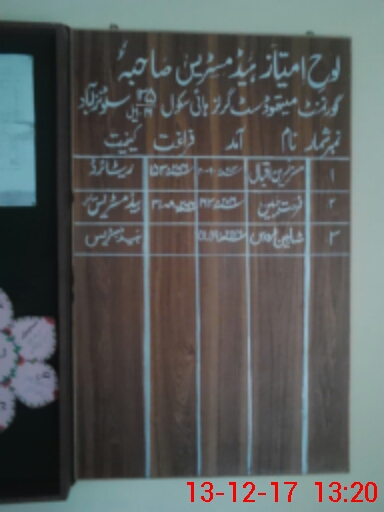 | EMIS Code: 36430044 | Name of School: GGHS 135/16-L, STUNZABAD, MIAN CHANNU | |||