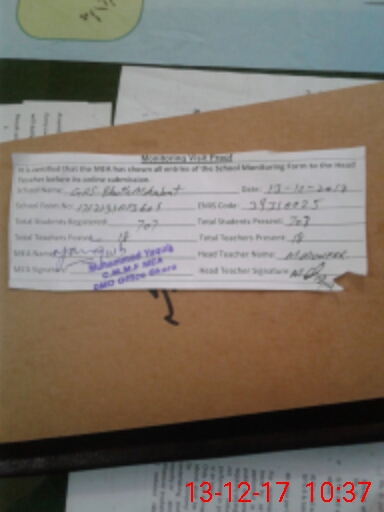 | Certified that this School was Inspected by the Undersigned MEA/DMO Today and the Information Stated Above is as Per Record. | |||||