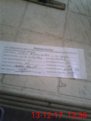 | Monitoring Date: 13-12-2017 | Start Time: 13-12-2017 01:00 PM | End Time: 13-12-2017 01:56 PM | Name of MEA: MU**** AH**** (R**** | |