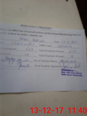 | Attendance Register | Head Teacher | MEA with School | Visit Proof |