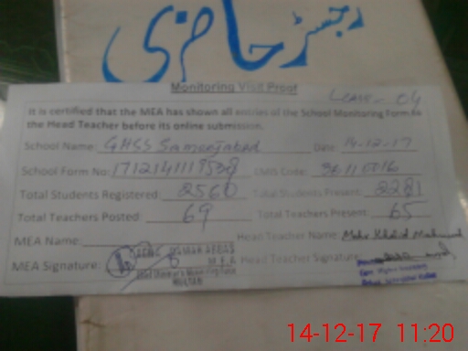 | EMIS Code: 36110016 | Name of School: GHSS SAMEEJABAD MULTAN | |||
