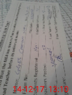 | Name: TA**** NA**** Designation: (School Headmaster's/Headmistress's) SSE Phone/Cell Number: 03**** |