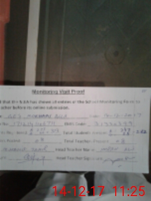 | Attendance Register | Head Teacher | MEA with School | Visit Proof |
