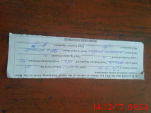 | Monitoring Date: 14-12-2017 | Start Time: 14-12-2017 09:05 AM | End Time: 14-12-2017 09:43 AM | Name of MEA: MU**** HU**** | |