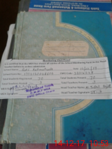 | Attendance Register | Head Teacher | MEA with School | Visit Proof |