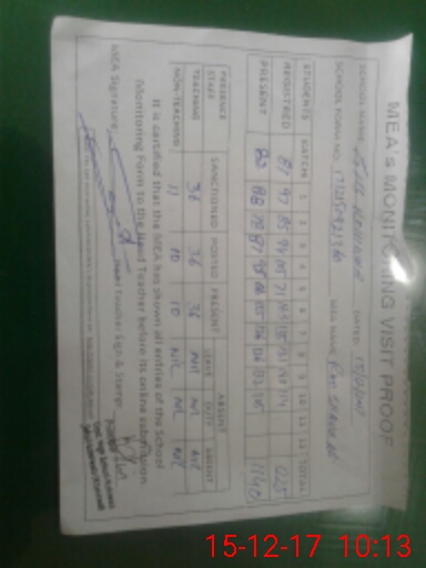 | Attendance Register | Head Teacher | MEA with School | Visit Proof |