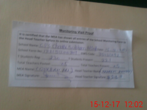 | Certified that this School was Inspected by the Undersigned MEA/DMO Today and the Information Stated Above is as Per Record. | |||||