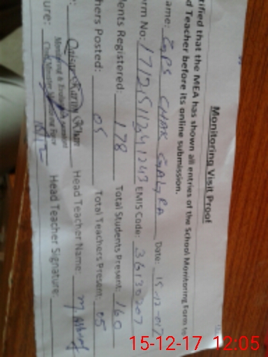 | Attendance Register | Head Teacher | MEA with School | Visit Proof |