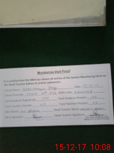 | EMIS Code: 31310446 | Name of School: GGPS MOZA JAHANGI | |||