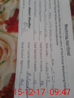 | Attendance Register | Head Teacher | MEA with School | Visit Proof |