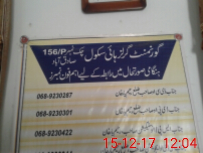 | EMIS Code: 31340034 | Name of School: GGHS CHAK NO. 156/P | |||