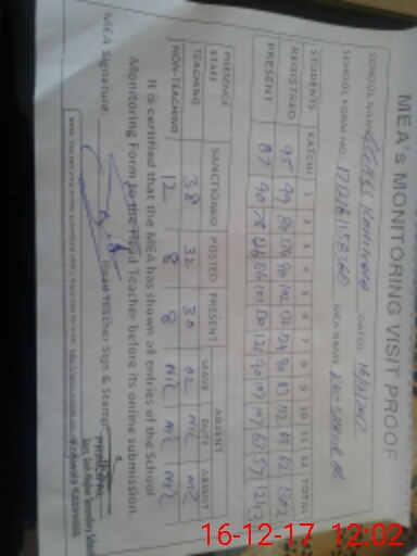 | Monitoring Date: 16-12-2017 | Start Time: 16-12-2017 11:15 AM | End Time: 16-12-2017 12:31 PM | Name of MEA: Ra**** Sh**** Al**** ex**** | |