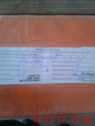 | Attendance Register | Head Teacher | MEA with School | Visit Proof |