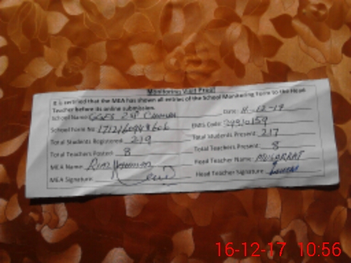 | Attendance Register | Head Teacher | MEA with School | Visit Proof |